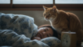 夜更かしも減った。猫は夜中に運動会することもあるけど、基本的には人間と一緒に寝るリズムになってくれて、私が布団に入ると隣に来て丸くなる。その温かさと、規則正しい寝息を聞いてると、スマホいじってる場合じゃないなって思えてくる。画面の光も猫の睡眠を邪魔しそうだし。結果的に、以前より1時間くらい早く寝るようになった。朝も猫に起こされるから、自然と早起きになって、生活リズムが整ってきた感じがする。