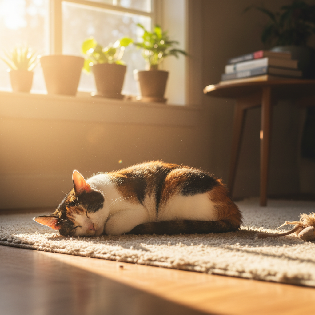 夕方になると、猫が急に走り出す時間がある。いわゆる「運動会」ってやつ。理由は誰にも分からない。突然スイッチが入って、部屋中を駆け回る。カーテンによじ登ったり、ソファの背もたれから飛び降りたり。10分くらい暴れまくって、急に止まる。そして何事もなかったように毛づくろいを始める。