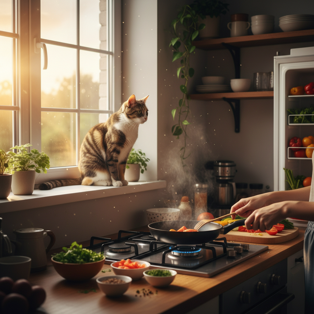 猫と暮らし始めてから、料理の時間が変わった気がする。以前はもっと効率重視で、ささっと作ってささっと食べて、みたいな感じだった。でも今は、ゆっくりになった。猫のペースに合わせてるわけじゃないんだけど、猫がそこにいるだけで、なんとなく時間の流れ方が違う。急ぐ理由がなくなるというか、急いでも仕方ないというか。