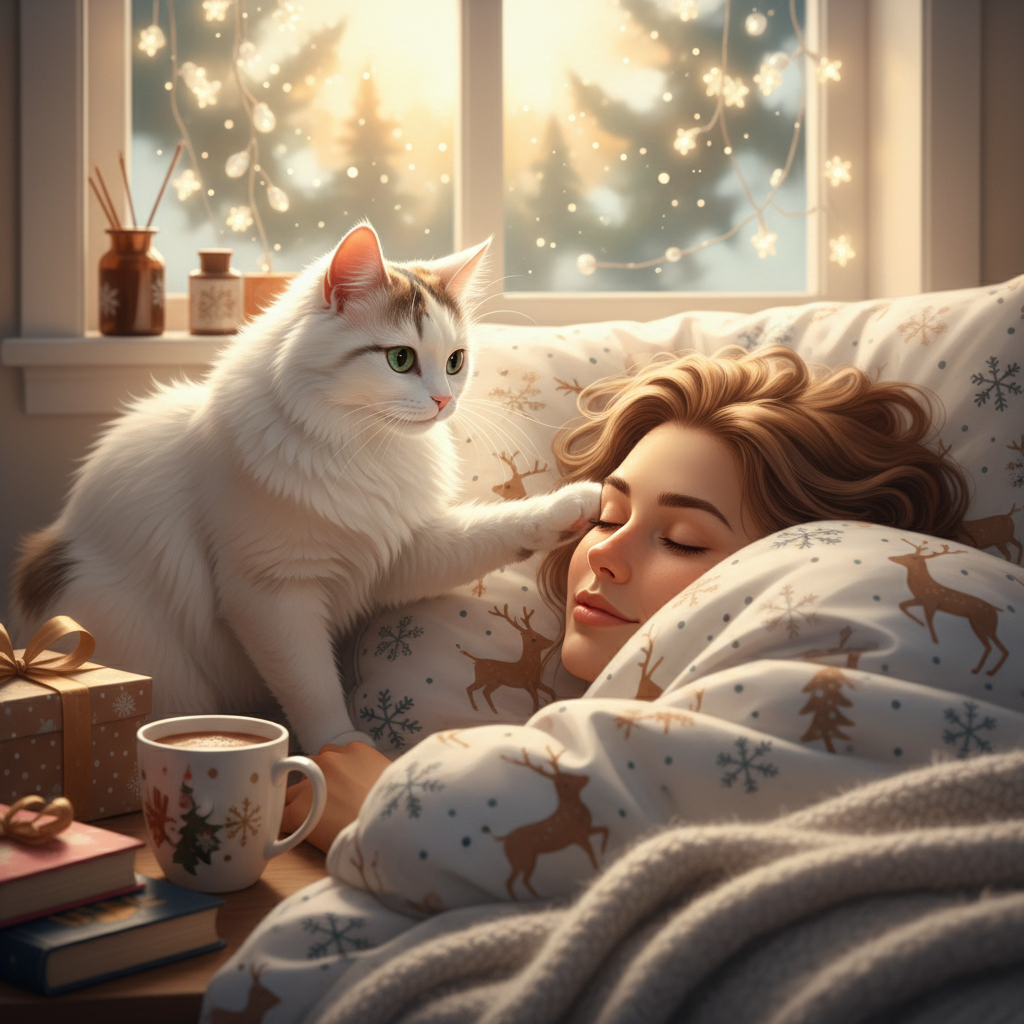 ベッドの中で猫と過ごすこの穏やかな時間は、一日の中で最も贅沢な瞬間かもしれません。仕事や家事、人間関係の複雑さから解放され、ただ純粋に生き物同士の触れ合いを楽しむ。言葉を交わさなくても、心は通じ合っている。そんな安心感に包まれながら、私は再びまどろみの中へと落ちていきます。