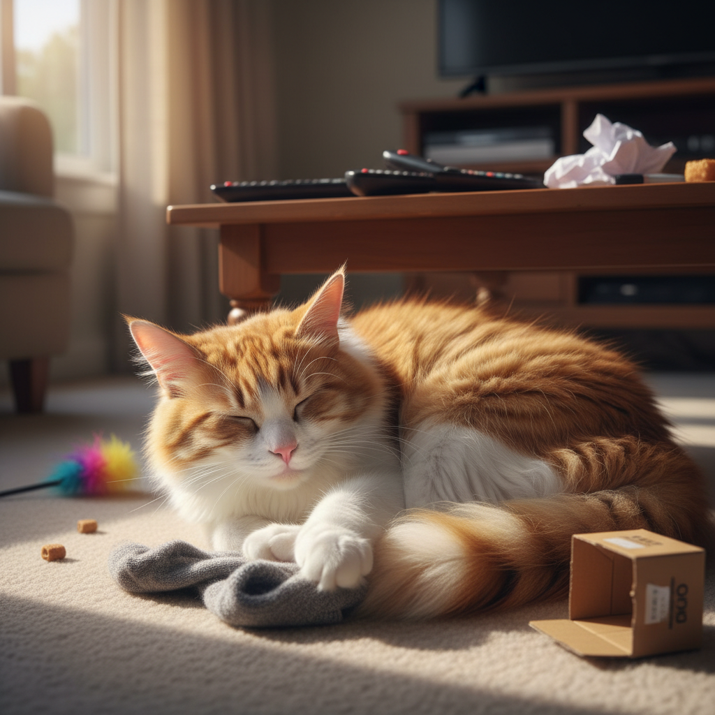 SNSで見る他の人の猫は、みんなもっとおとなしくて、日向でまったり寝てたり、飼い主の膝の上で丸くなってたりする。うちにもそういう時間はある。夕方、疲れ果てたムギが私の隣にごろんと横になって、ゴロゴロ喉を鳴らしながら眠りにつく瞬間。その顔を見てると、さっきまでの騒動も許せる気がしてくる……気がするだけで、やっぱり散らかった部屋を見ると少し呆れるんだけど。